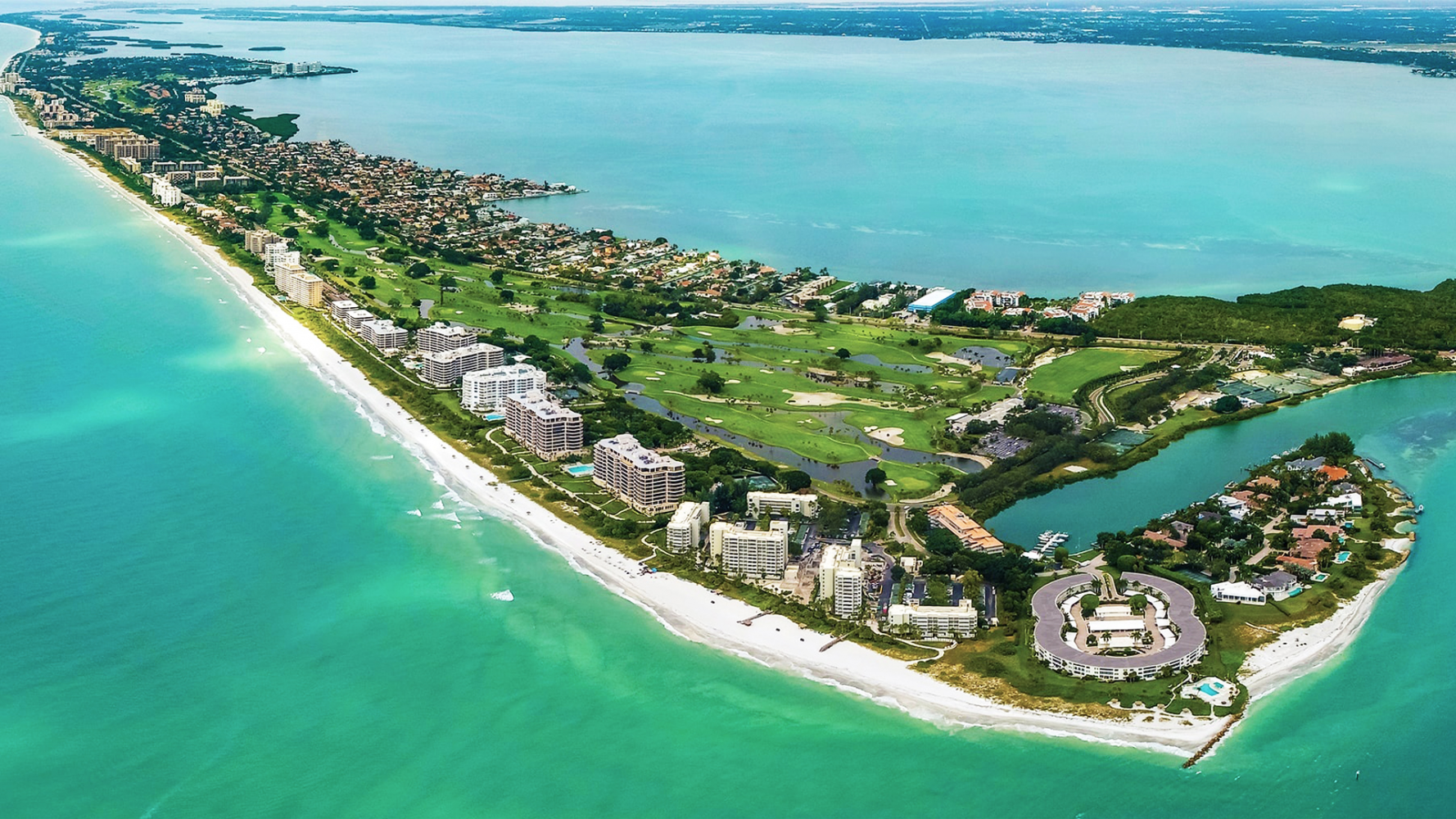 Longboat Key is an offshore barrier island running roughly north to south and enclosing the western boundary of Sarasota Bay in Southwest Florida. The island’s eastern shoreline has dense mangroves except where canals have been dredged and marinas built. The western shoreline consists of a white sand beach on the Gulf of Mexico. On both the north and south ends, Longboat Key is separated from neighboring islands by deep water passes from the Gulf to Sarasota Bay. St. Armands Key and Lido Key lie just south of Longboat Key and West of Sarasota. Lido Key is bordered by Sarasota Bay on the East and by the Gulf of Mexico on the West. St. Armands Key is surrounded by Lido Key on the West and Sarasota Bay on the East. Longboat Key, Lido Key and St. Armands Key are directly connected to each other by bridges.